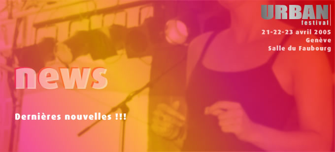 10.04.2005 THE YOUNG GODS ne participeront pas à la prochaine édition du festival URBAN. Leur concert à Genève est annulé en raison de problème de santé d’un des membres du groupe. Cristian Vogel (invité par THE YOUNG GODS), suite à ce changement de programme, a préféré annulé son show au Urban Festival III. SAMAEL les remplacera en tête d’affiche, Samedi 23 avril. Le remboursement des places se fait sur le lieu d'achat des billets.
